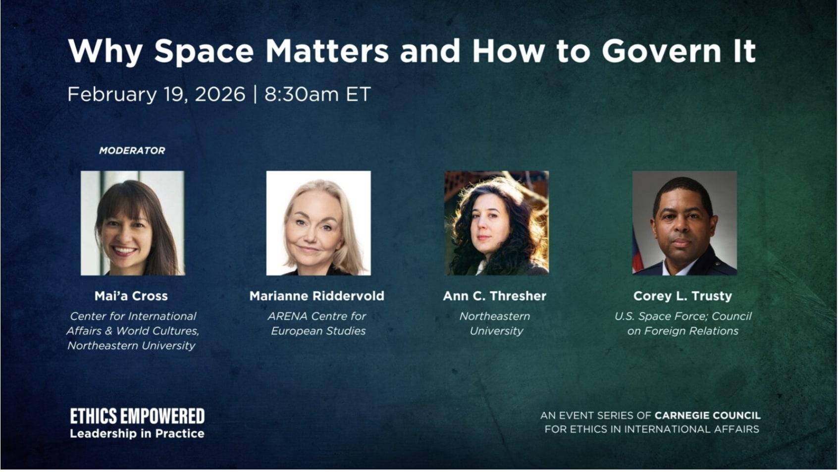 In this convening, an expert panel will grapple with ethical questions on governance, militarization, and emerging technology in space.